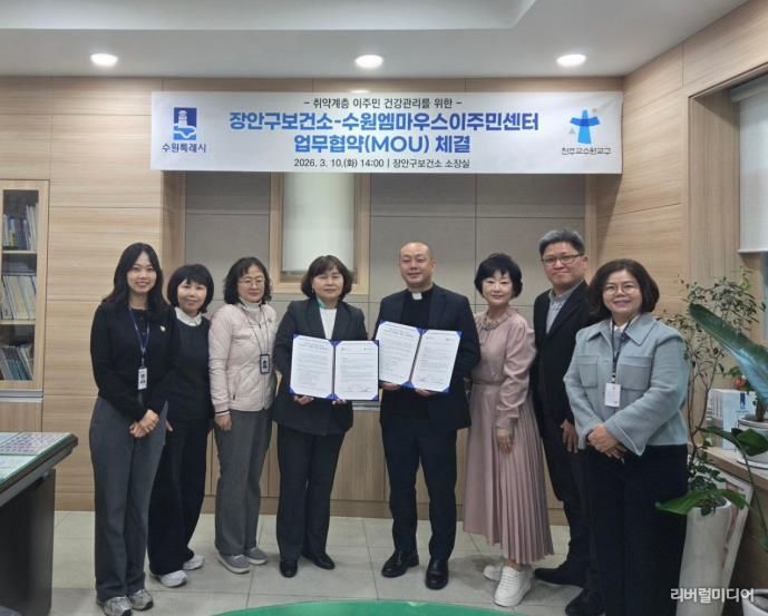 [리버럴미디어=공소리 기자] 수원시 장안구보건소와 수원 엠마우스는 10일 장안구보건소에서 업무협약을 체결하고, 취약계층 이주민 건강관리 지원을 위해 협력하기로 했다.