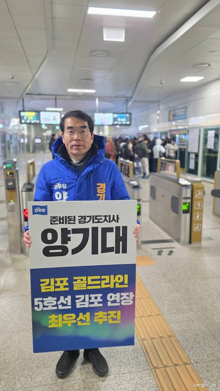 [리버럴미디어=공소리 기자] 서울 지하철 5호선 김포 연장 사업이 예비타당성 조사(예타)를 통과한 가운데, 양기대 더불어민주당 경기도지사 예비후보가 11일 오전 ‘지옥철’로 불리는 김포골드라인 구래역을 찾아 현장 점검에 나섰다.