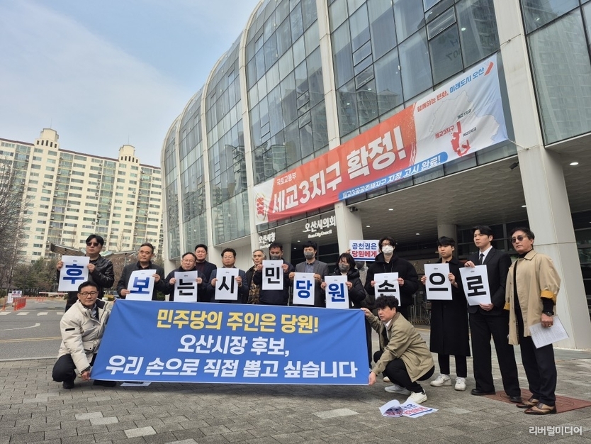 [리버럴미디어=공소리 기자] 더불어민주당을 사랑하는 오산시 주권 당원들이 11일 오후 2시 오산시청 앞에서 기자회견을 열고 오산시장 후보 선출을 위한 ‘전략공천 반대 및 공정 경선 실시’를 중앙당에 강력히 건의했다.