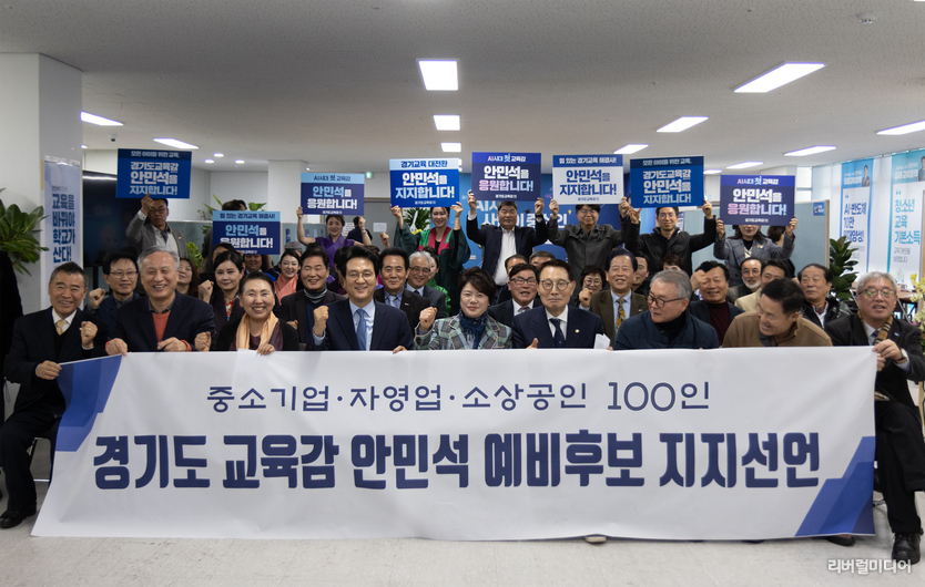[리버럴미디어=공소리 기자] 경기지역 중소기업·자영업·소상공인 100인이 안민석 경기도교육감 예비후보 지지를 선언하며 “삶과 연결된 교육을 실현할 적임자”라고 밝혔다. 현장을 대표하는 직능단체가 교육 변화의 필요성에 뜻을 모았다는 점에서 의미가 크다.
