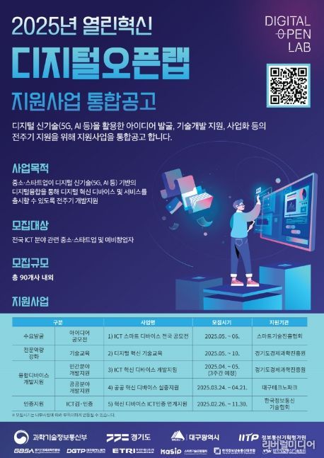 신청 대상은 경기도에 사업장을 둔 중소기업 또는 스타트업이다. 디바이스나 관련 서비스 개발 역량을 보유한 기업이라면 열린혁신 디지털 오픈랩 공식 누리집을 통해 온라인으로 신청할 수 있다.
