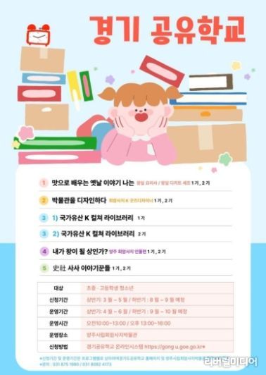 참여 신청은 ‘경기공유학교’ 공식 누리집을 통해 접수할 수 있다.