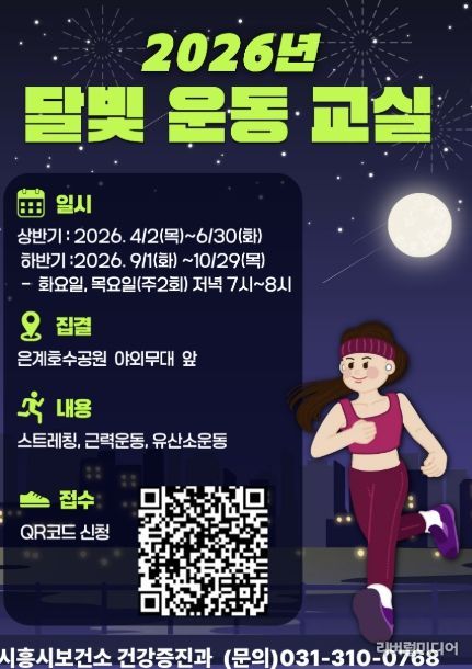 [리버럴미디어=공소리 기자] 시흥시는 시민들의 건강한 생활습관 형성과 신체활동 증진을 위해 오는 4월 2일부터 은계호수공원 야외무대 앞에서 ‘2026년 달빛 운동 교실’을 운영한다.