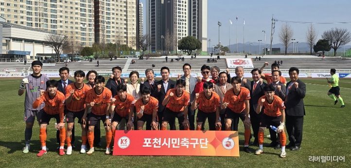 [리버럴미디어=공소리 기자] 포천시는 포천시민축구단이 지난 22일 열린 2026 케이(K)3리그 홈 개막전에서 경주한수원축구단을 2대1로 제압하며 값진 승리를 거뒀다고 밝혔다.