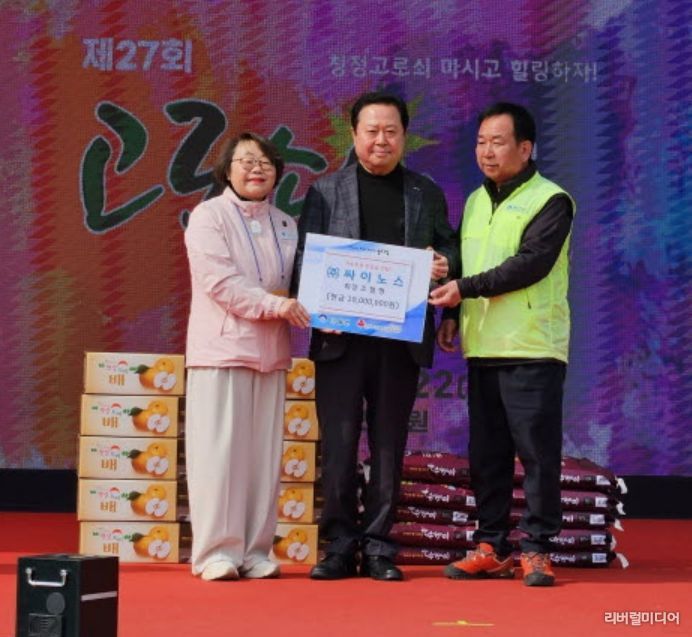 [리버럴미디어=공소리 기자] 양평군 단월면은 지난 21일과 22일, 축제 기간 중 단월레포츠공원에서 열린 기념행사에서 ㈜싸이노스 조철형 회장이 이웃돕기 성금 1,000만 원을 전달했다고 밝혔다.
