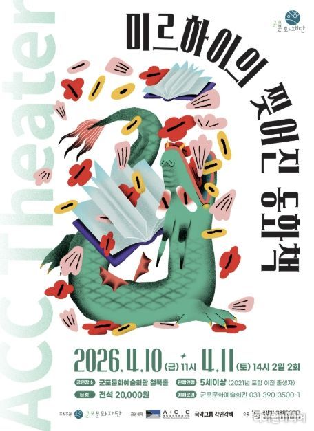 [리버럴미디어=공소리 기자] 군포문화재단은 어린이와 가족이 함께 관람할 수 있는 공연 '미르하이의 찢어진 동화책'을 4월 10일~11일 군포문화예술회관 철쭉홀에서 개최한다고 밝혔다. 이번 공연은 2026 국립아시아문화전당재단 어린이 공연 유통 공모사업의 일환으로, 국립아시아문화전당(ACC) 창·제작 어린이 공연을 지역에 소개하기 위해 마련됐다.