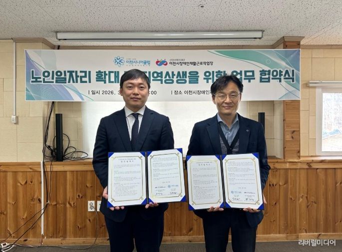 [리버럴미디어=공소리 기자] 이천시는 이천시니어클럽이 2026년 신규 노인일자리 사업으로 장애인 지원 사업을 추진하고, 3월 23일 이천시장애인재활근로작업장과 업무협약을 체결했다고 밝혔다.