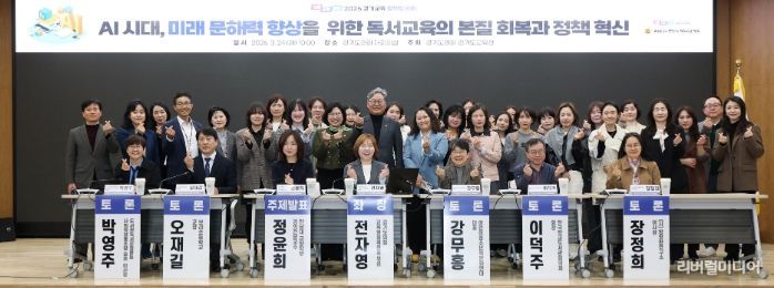 [리버럴미디어=공소리 기자] 전자영 경기도의회 교육행정위원회 위원(더불어민주당, 용인4)이 좌장을 맡은 'AI시대,미래 문해력 향상을 위한 독서교육의 본질 회복과 정책 혁신' 토론회가 03월 24일 경기도의회 대회의실에서 개최됐다.