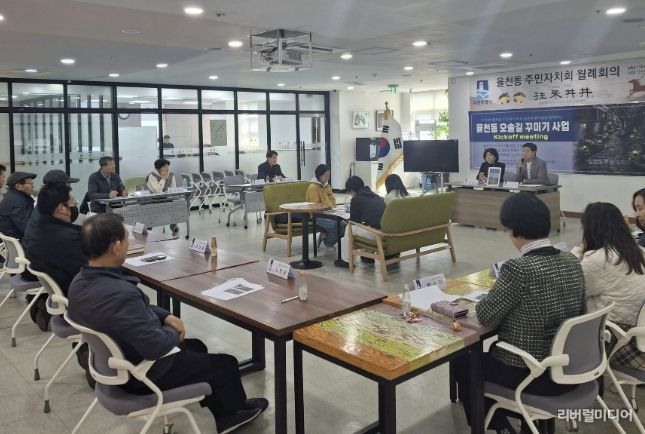 [리버럴미디어=공소리 기자] 수원시 장안구 율천동 주민자치회와 성균관대학교 학생들이 지난 24일, ‘율천동 오솔길 꾸미기 사업’을 위한 회의를 개최했다.