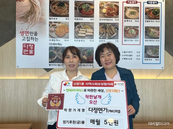 한편 신장1동은 착한가게 발굴을 지속적으로 확대하며 지역 내 나눔문화 확산과 촘촘한 돌봄체계 구축을 위한 다양한 복지사업을 이어갈 계획이다.
