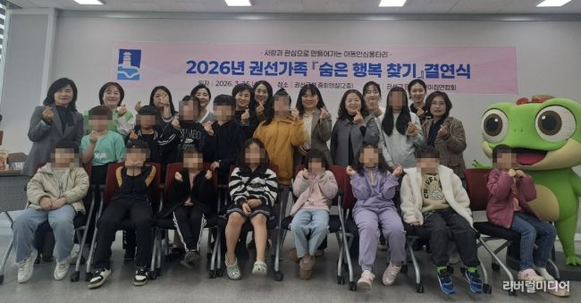 [리버럴미디어=공소리 기자] 수원시 권선구는 지난 25일 구청 중회의실에서 2026년 권선가족 ‘숨은 행복 찾기’ 결연식을 열었다.