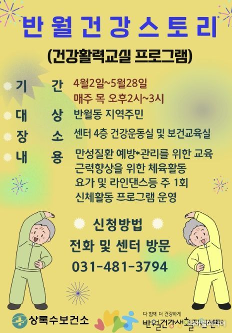 프로그램은 3월 26일부터 반월건강생활지원센터로 방문 또는 전화로 신청할 수 있다.
