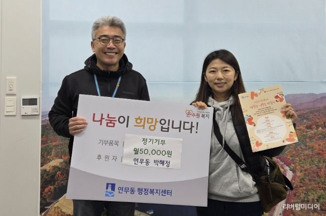 중국 국적의 박혜정님은 지난 15년간 연무동에 거주하며 동네에 대한 깊은 애정을 키워왔다. 그는 “이곳은 나와 우리 가족에게 단순한 타국이 아니라 삶의 터전이자 두 번째 고향”이라며, “그동안 동네에서 받은 따뜻한 이웃의 정을 이제는 어려운 분들에게 나누고 싶어 매월 5만 원의 정기후원을 결심했다”고 전했다.