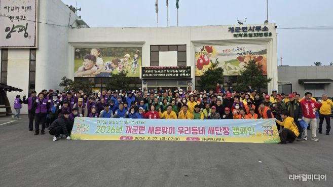 [리버럴미디어=공소리 기자] 양평군 개군면은 27일 오전 7시, ‘2026년 제23회 양평산수유한우축제’의 성공적인 개최를 기원하며 민관 합동 ‘우리동네 새단장 캠페인’을 실시했다.