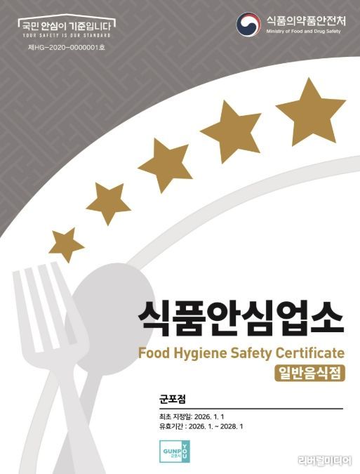 [리버럴미디어=공소리 기자] 군포시는 식품안심업소(음식점위생등급 지정업소, 이하 지정업소) 재지정 평가에 대한 영업자 부담을 줄이고 재지정률을 높이고자 이달부터 지정업소 청소비 지원 사업을 추진한다.