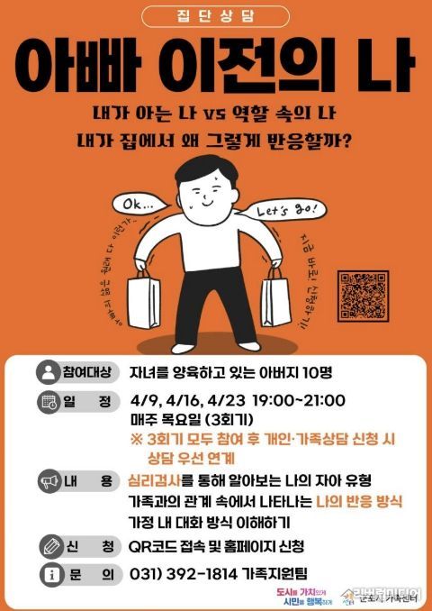 군포시가족센터 관계자는 “아버지 역할에 집중하다 보면 자신의 감정이나 욕구를 돌아볼 기회가 부족할 수 있다”며 “이번 프로그램을 통해 가정 내에서 보다 균형 있는 관계를 만들어가는 계기가 될 수 있다”고 전했다.