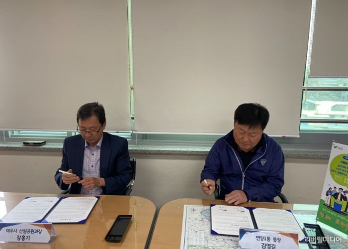 [리버럴미디어=공소리 기자] 여주시는 지난 27일 여주시청(산림공원과)에서 연양1통(통장 김영길)과 「금은모래강변공원 미 조성지 경관 작물 재배」 업무 협약을 체결했다.