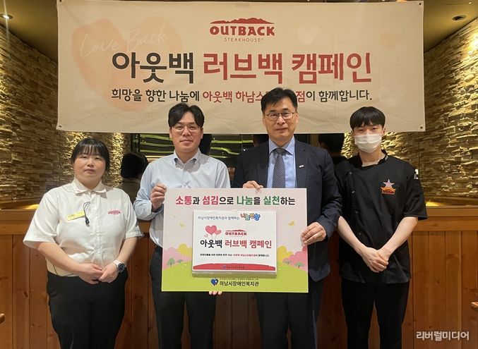 [리버럴미디어=공소리 기자] 하남시장애인복지관은 3월 25일 아웃백 스테이크하우스 하남 스타필드점과 함께 2026년 첫 번째 '아웃백 러브백 캠페인'의 나눔 반상 행사를 성황리에 마쳤다고 밝혔다.