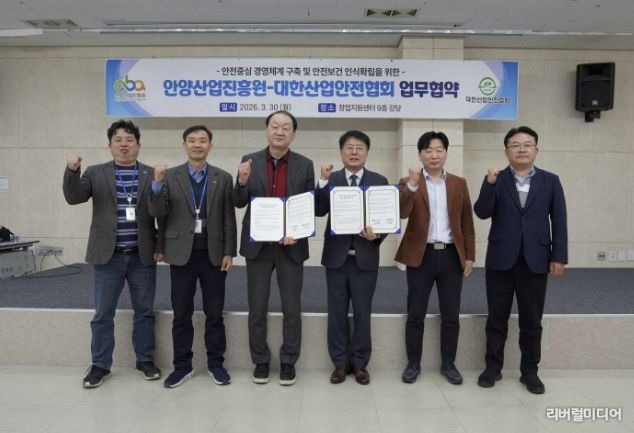 [리버럴미디어=공소리 기자] 안양산업진흥원은 지난 30일 안양 창업지원센터 9층 강당에서 대한산업안전협회와 산업안전 및 안전보건 인식 확립을 위한 업무협약을 체결했다고 31일 밝혔다.