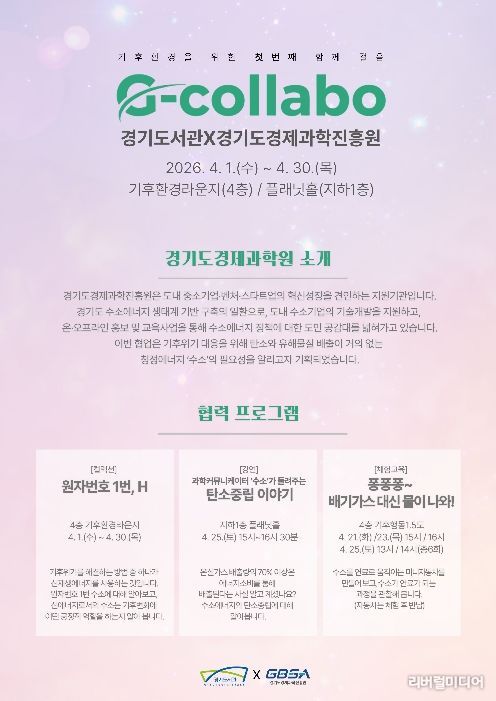 [리버럴미디어=공소리 기자] 경기도서관은 수소 에너지를 널리 알리기 위해 4월 한 달간 경기도경제과학진흥원과 협업프로젝트를 운영한다고 1일 밝혔다. 전시와 강좌, 체험을 연계한 프로그램을 통해 수소산업과 탄소중립에 대한 인식을 확산하는 것이 목적이다.