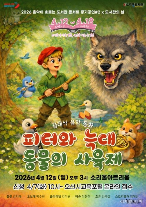 [리버럴미디어=공소리 기자] 오산시 소리울도서관은 오는 4월 12일 오후 3시 소리울아트리움에서 ‘2026 도서관의 날’을 기념해 온 가족이 클래식의 매력을 즐길 수 있는 '음악이 흐르는 도서관 콘서트'를 개최한다.