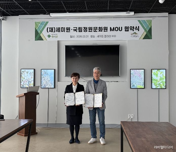 [리버럴미디어=공소리 기자] 재단법인 세미원과 국립정원문화원은 지난 3월 31일 세미원에서 상호 협력을 위한 업무협약(MOU)을 체결했다.