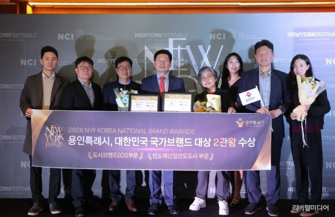 [리버럴미디어=공소리 기자] 용인특례시가 칸 국제광고제, 클리오광고제와 함께 세계 3대 광고제로 꼽히는 뉴욕페스티벌(NYF)이 주관하는 ‘2026 뉴욕페스티벌 대한민국-국가브랜드 대상’(NYF K-NBA)에서 도시브랜드(CI) 부문과 반도체산업 선도 도시 부문 1위로 선정됐다.