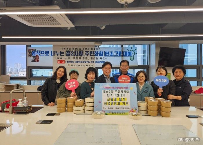 [리버럴미디어=공소리 기자] 광명시 철산2동 주민자치회는 지난 1일 지역 주민들과 함께 저탄소·친환경 식재료로 만든 음식을 ‘광명마을냉장고(연서로 10)’에 기부하며 탄소중립 실천에 앞장섰다.