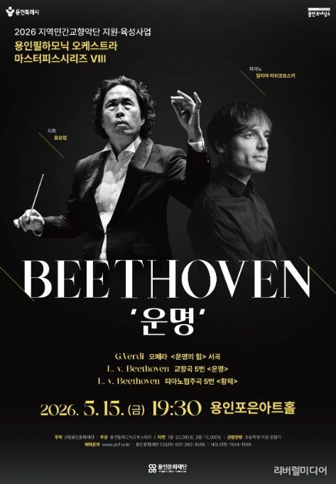 [리버럴미디어=공소리 기자] 용인문화재단은 오는 5월 15일 오후 7시 30분 용인포은아트홀에서 ‘2026년 지역민간교향악단 지원·육성사업’의 첫 공연으로 용인필하모닉오케스트라의 기획공연 '마스터피스 시리즈 Ⅷ - 베토벤 ‘운명’'을 선보인다.