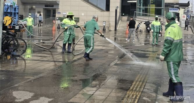 참여자들은 수원역 광장과 환승센터 일대에 적치된 폐기물을 수거하고 살수차를 활용한 물청소를 실시하는 등 환경 개선 활동에 힘을 모았으며, 고압세척장비를 활용해 보도 표면은 물론 오염이 쉽게 누적되는 구간까지 세심하게 세척 작업을 진행하여 쾌적한 거리 환경 조성에 앞장섰다.