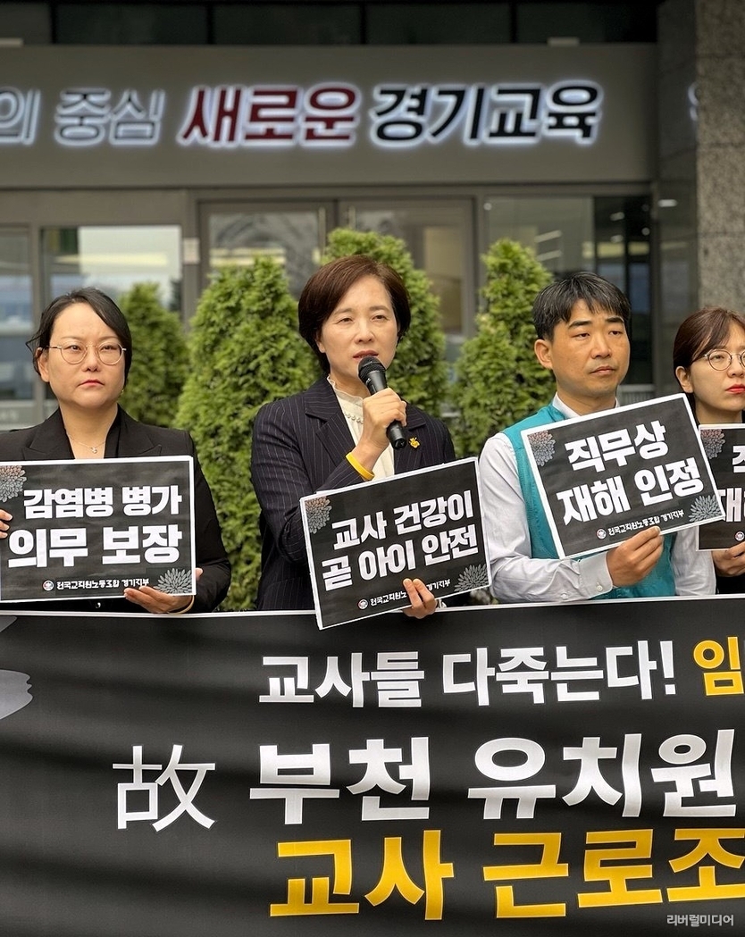 이어 “고인의 죽음은 단순한 개인의 불행이나 질병이 아니라, 아파도 쉴 수 없는 구조가 만든 ‘사회적 타살’”이라며 “경기도교육청이 ‘사립’이라는 이유로 책임을 회피할 수 없고 관리·감독의 최종 책임은 분명히 교육당국에 있다”고 강조했다.