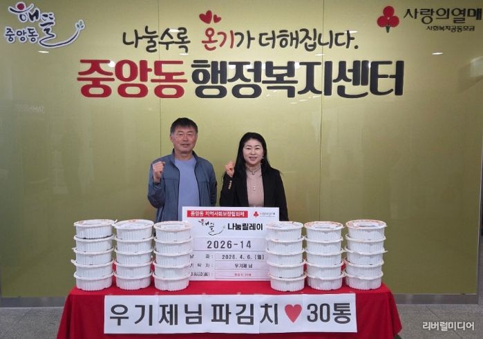 [리버럴미디어=공소리 기자] 오산시 중앙동행정복지센터는 지난 6일 우기제 지역사회보장협의체 전(前) 위원장이 지역 내 어려운 이웃들을 위해 직접 담근 파김치 30통을 기탁했다고 밝혔다.