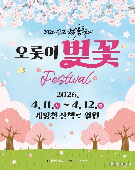 [리버럴미디어=공소리 기자] (재)김포문화재단은 오는 4월 11일부터 12일까지 이틀간 계양천 산책로 일원에서 '2026 김포 벚꽃축제 '오롯이 벚꽃''을 개최한다고 밝혔다.