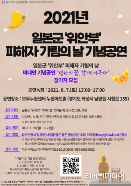 [리버럴미디어=공소리 기자] 화성시청소년성문화센터는 오는 8월 14일 일본군 ‘위안부’ 피해자 기림의 날을 맞이하여 비대면 기념 공연을 진행한다.