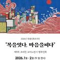 [리버럴미디어=공소리 기자] 파주시 금촌3동은 2026년 병오년 새해를 맞아 특별 민화 초대전 '2026 복을 잇다, 마음을 펴다'를 개최한다고 전했다. 이번 전시는 금촌3동 행복마을관리소가 문화소외지역 주민들에게 문화 예술 체험의 기회를 제공하고자 행정복지센터 내 유휴공간을 활용해 다목적 공간으로 새롭게 조성한 것을 기념하는 첫 번째 초대전이다. 주민들이 일상 속에서 문화 예술을 향유하고, 교양과 소통의 기회를 누릴 수 있도록 마련됐다. ‘주민이 함께 열어가는 새해, 공동체 회복, 문화적 힐링’을 기획 의도로 한 이번 전시는 문턱 낮은 전시를 통해 누구나 쉽게 예술을 접하고 이웃과 자연스럽게 소통할 수 있는 자리를 제공한다. 전시는 12월 30일 개관 기념행사를 시작으로, 1월 2일부터 2월 27일까지 본격적으로 진행된다. 초대 작가로는 현대적 감각으로 민화를 재해석해 온 노연서 작가가 참여한다. 전시에서는 액운을 막고 복을 기원하는 ‘현대 민화’와, 복을 정성스럽게 싸서 전한다는 의미를 담은 ‘보자기 아트’를 결합한 작품들을 선보일 예정이다. 전통의 미감을 바탕으로 현대적인 감성을 더한 작품들은