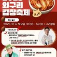 [리버럴미디어=공소리 기자] 구리시상권활성화재단은 오는 12월 6일 구리광장에서 ‘2025 와구리 김장축제’를 개최한다고 밝혔다. 이번 축제는 ‘경기도 상권 친화형 도시 조성 공모사업’ 선정으로 추진되는 ‘구리 윈터페스타’의 첫 번째 행사로, 지역 농산물 소비 촉진, 전통문화 체험, 이웃돕기 나눔 실천을 주요 가치로 삼아 시민 누구나 참여할 수 있는 겨울 축제로 마련됐다. 축제의 하이라이트인 김장 체험은 시민들이 직접 김치를 담가보는 프로그램으로 진행되며, 흑백요리사로 큰 인기를 얻고 있는 이모카세 김미령 한식 요리사의 지도로 구리시새마을회, 구리 도시공사, 무지개합창단 등 지역 자원봉사자들이 함께해 김장을 처음 접하는 시민들도 손쉽게 전통 김치를 완성할 수 있도록 도울 예정이다. 이날 담근 김치의 일부는 관내 홀로 어르신, 다문화가정 등 취약계층에 전달돼 시민이 직접 참여하는 연말 나눔 활동으로 따뜻한 의미를 더한다. 또한 축제장을 찾은 시민들을 위해 트로트 가수 태진아의 공연, 가야금 영재 조영재 & 아인스바움 윈드 챔버 연주 등 풍성한 무대 프로그램과 지역 소상공인 먹거리 부스, 다양한 체험