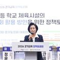 [리버럴미디어=공소리 기자] 경기도의회 정윤경 부의장(더불어민주당, 군포1)은 3월 16일 경기도의회 대회의실에서 열린 ‘운동장 등 학교 체육시설의 지역사회 활용 방안을 위한 정책토론회’에서 좌장을 맡아 학교 체육시설을 지역사회와 공유하는 다양한 방안을 논의했다. 이번 토론회는 도심 속 생활체육 공간 부족으로 인한 주민 불편을 해소하고, 학교를 지역 공동체의 거점 공간으로 활용하기 위한 협력 방안을 모색하기 위해 마련됐다. 토론회는 경기도의회와 경기도교육청이 공동으로 주최하는 ‘2026 경기도 정책토론회’의 일환으로 개최됐다. 토론회에는 김진경 경기도의회 의장, 임태희 경기도교육청 교육감, 김동연 경기도지사, 최종현 경기도의회 더불어민주당 대표의원이 축하 인사를 전하며 정책토론회 개최의 의미를 더했다. 이날 좌장을 맡은 정윤경 부의장은 “운동장 등 학교 체육시설은 지역사회의 중요한 생활체육 공간이자 공동체 소통의 거점”이라며 “학생의 안전과 교육 환경을 최우선으로 하면서도 학교의 부담은 최소화하고, 지역 주민들이 효율적으로 활용할 수 있는 합리적인 운영 방안을 마련하는 것이 필요하다”라고 토론회의 문을 열었다.