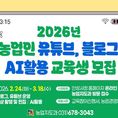 [리버럴미디어=공소리 기자] 안성시농업기술센터는 지역 농업인의 디지털 매체 활용 능력을 높이고 농산물 홍보 역량을 강화하기 위해 ‘2026년 농업인 유튜브·블로그·AI 활용 교육’ 교육생을 모집한다. 이번 교육은 블로그 운영뿐만 아니라 인공지능(AI)과 유튜브 동영상을 접목한 실전형 교육 과정으로 구성됐다. 안성시농업기술센터는 오는 2월 24일부터 3월 18일까지 매주 화·수·목요일 총 11회에 걸쳐 정보화교육장에서 전문 교육을 실시한다. 교육 내용은 블로그 만들기 및 AI를 활용한 게시물 작성 방법, 유튜브 채널 개설과 프로필 작성, 스마트폰을 활용한 동영상 촬영 및 편집 기술 등 실무 위주로 편성됐다. 교육 신청은 2월 2일부터 2월 20일까지 안성시청 홈페이지를 통한 온라인 접수 또는 농업지도과 방문 접수로 가능하다. 모집 인원은 10명 내외이며, 신청 시 교육참여신청서와 농업경영체등록확인서를 제출해야 한다. 합격자는 선정 후 문자로 개별 통보되며, 수료를 위해서는 전체 과정의 80% 이상 출석이 필요하다. 안성시농업기술센터 관계자는 “농업인이 직접 AI와 유튜브를 활용하여 고품질의 홍보 콘텐츠를 생산함으로써 농가 브랜드 가치를 높일 수 있도록 적극 지