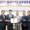 [리버럴미디어=공소리 기자] 경기도의회는 23일 오전 의장 접견실에서 동국대학교와 교육협력 및 학술교류를 위한 업무협약(MOU)을 체결했다. 이날 협약식에는 김진경 의장(더민주, 시흥3)과 고준호 의원(국민의힘·파주1), 김완규 의원(국민의힘·고양12), 이병숙 의원(더민주·수원12), 박호순 의정국장이 참석했다. 동국대학교에서는 윤재웅 총장, 김용현 교무부총장, 김승용 대학원장, 유한림 BMC(바이오메디캠퍼스) 행정처장 등이 함께 자리해 협약의 의의를 더했다. 양 기관은 이번 협약을 계기로 ▲의정 발전을 위한 정보 교류 ▲전문 인재 양성을 위한 교육·연구 지원 ▲도의원 및 의회 직원 대상 대학원 장학금 지원 등 의정 활동 역량 강화를 위한 체계적인 교육 협력에 나서기로 했다. 윤재웅 총장은 “대학의 교육·연구 역량을 공유함으로써 경기도 발전에 기여할 수 있게 되어 뜻깊다”며 “경기도의회와의 지속적인 협력을 통해 실효성 있는 교육 지원을 이어갈 수 있도록 최선을 다하겠다”라고 말했다. 김진경 의장은 “의회에 대한 도민의 기대는 점점 더 복잡해지고 다양화되고 있는 만큼 의회 구성원 모두가