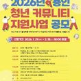[리버럴미디어=공소리 기자] 용인특례시는 2월 18일까지 ‘청년 커뮤니티 지원사업’에 참여할 10개 팀을 모집한다고 29일 밝혔다. 대상은 용인에 주소를 두거나 지역에서 활동하는 18~39세 청년 3명 이상으로 구성된 모임이다. 시는 문화예술, 자기 계발, 사회공헌, 취·창업 등 청년들이 자유롭게 활동 주제를 선정해 사업을 기획하고 실행할 수 있도록 지원한다. 다양한 분야에서 공동의 관심사를 가진 청년들이 활동할 동아리 5팀과 지역사회 문제 해결을 위한 창의적이고 구체적인 활동 계획을 세운 프로젝트 5팀을 선발한다. 선정된 팀에는 모임비, 교육·문화비, 소모품 구매비, 강사비 등 활동 목적에 맞게 사용할 수 있는 비용을 지원한다. 단순한 친목 도모나 정치‧종교적 또는 수익 창출 등을 목적으로 하는 모임은 지원 대상에서 제외된다. 지원금은 동아리팀 50만 원, 프로젝트팀 250만 원이며, 모든 팀은 지원금의 10% 이상을 자부담금으로 편성해야 한다. 참여를 원하는 청년은 3명 이상의 팀을 구성해 보탬e 지방보조금관리시스템을 통해 온라인으로 신청하면 된다. 시는 3월 지원 대상팀을 최종 선정할 예정이다. 자세한 내용은 용인시 홈페이지, 용인청년포털(청년e랑),
