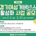[리버럴미디어=공소리 기자] 경기도여성비전센터가 오는 2월 27일까지 경기여성거버넌스 활성화 공모사업 수행 단체를 모집한다. 경기여성거버넌스 활성화 사업은 여성 지역 주민으로 구성된 기관이나 단체를 선정해, 여성·가족 분야 정책 등 공공 과제 발굴과 개선 사업을 할 수 있도록 지원하는 사업이다. 지원 대상은 도내 비영리법인·비영리민간단체·사회적협동조합으로, 사업자선정심의위원회와 경기도지방보조금관리위원회 심의를 거쳐 선정된 단체에 최대 1천만 원의 사업비가 지원된다. 공모 주제는 ▲여성의 연결과 성장 사업 ▲여성·가족 분야 지역생태계(네트워크) 조성 사업 ▲여성 역량강화 및 사회참여 확산 사업 ▲여성·가족분야의 정책이슈 발굴 및 양성평등 문화 확산 ▲여성 문화예술 활동 사업 등이다. 참여를 희망하는 단체는 오는 2월 27일 오후 6시까지 지원신청서, 사업계획서 등을 작성해 담당자 전자우편으로 신청하거나 경기도여성비전센터 여성소통지원팀으로 우편 제출하면 된다. 작년에는 4개 단체가 선정돼 총 2천만 원의 지원금으로 문화예술 활동, 경제 교육, 여성 리더 네트워크 구축 등 다양한 사업을 추진