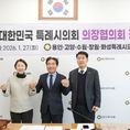 [리버럴미디어=공소리 기자] 대한민국특례시의회 의장협의회는 1월 27일, 용인특례시의회에서 제28차 정례회의를 개최했다. 이날 정례회의에는 김운남 고양특례시의회 의장을 비롯해 유진선 용인특례시의회 의장, 배정수 화성특례시의회 의장이 참석했다. 이번 회의에서는 지난 제27차 정례회의 개최 결과 등을 보고 받은 후, 이번 차수에 상정된 2개 안건에 대해 심도 있는 심의 및 의결을 진행했다. 김운남 협의회장은 “혼자 가면 길이 되지만, 함께 가면 역사가 된다”며, “우리 협의회가 대한민국의 지방자치 역사를 새롭게 쓴다는 자부심을 가지고, 앞으로도 굳건하게 연대하여 특례시의회의 목소리가 정책에 반영되고, 특례시의회의 독립성과 전문성을 확실히 강화할 수 있도록 모든 역량을 집중하겠다”고 밝혔다. 한편, 대한민국특례시의회 의장협의회는 인구 100만 이상 대도시이자 특례시 지위를 가진 고양시를 비롯한 수원시, 용인시, 창원시, 화성시의회 의장으로 구성되어 있으며, 분기별 정례회의를 통해 특례시의회 권한 강화를 위한 다양한 활동을 펼쳐오고 있다.